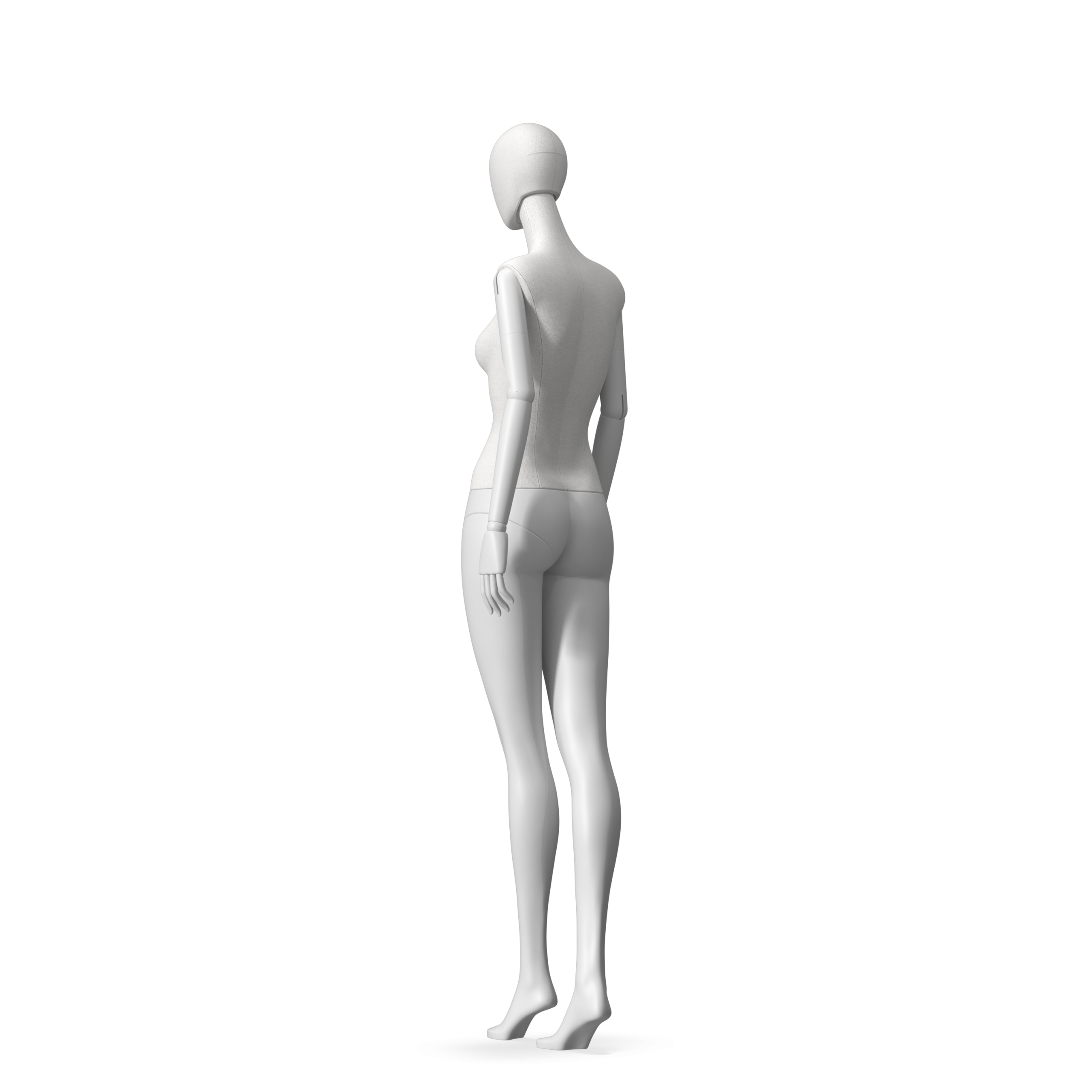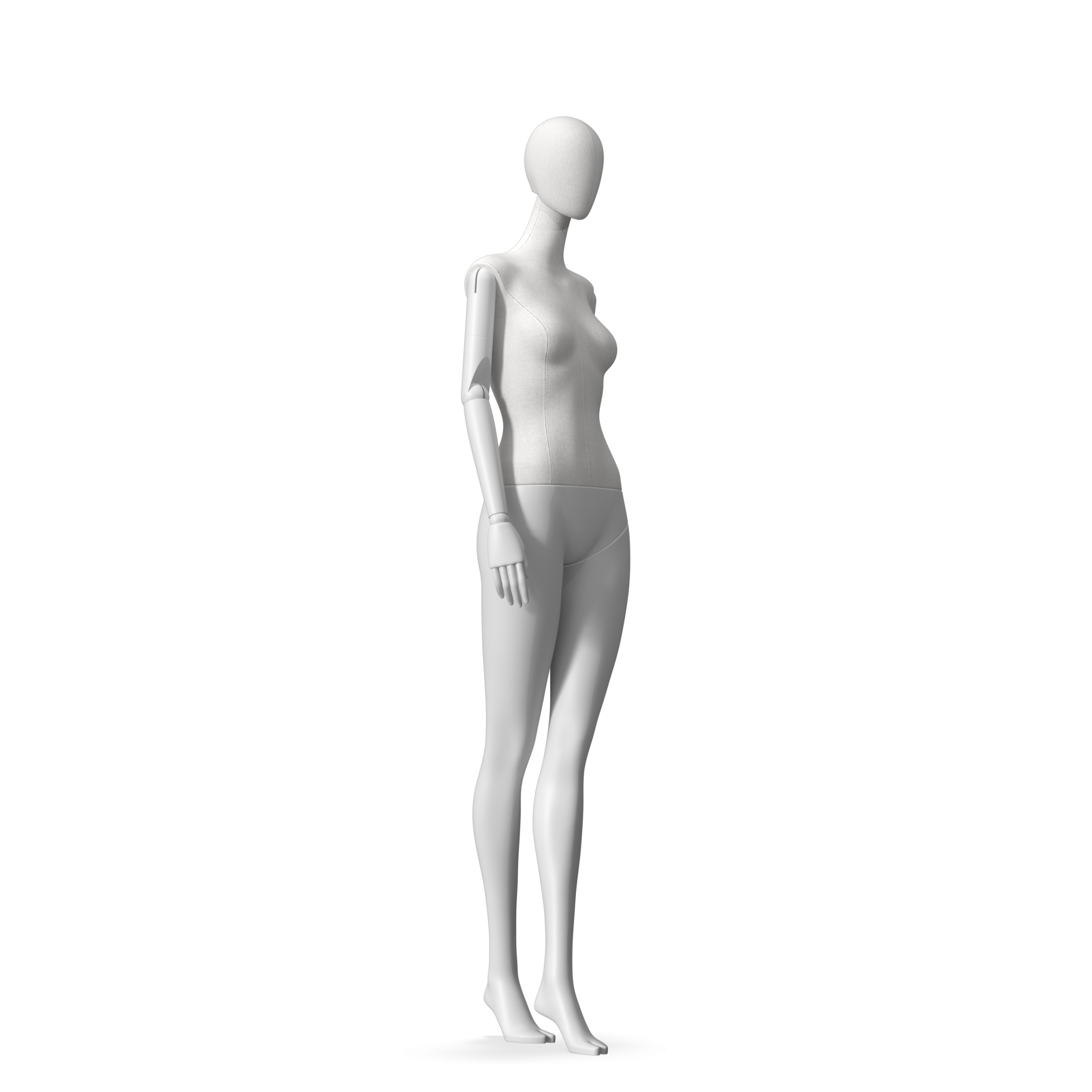 The Female Radiant Fabric is covered with fbr-amjf640 canvas linen look fabric and has C8 white matte, wooden articulated arms. She has a detachable 360˚ Egg Head with a NO-GAP design. Different head options can be ordered seperately. A 42cm Round Glass Base with a Silver Chrome Upright & Calf Pin is included.