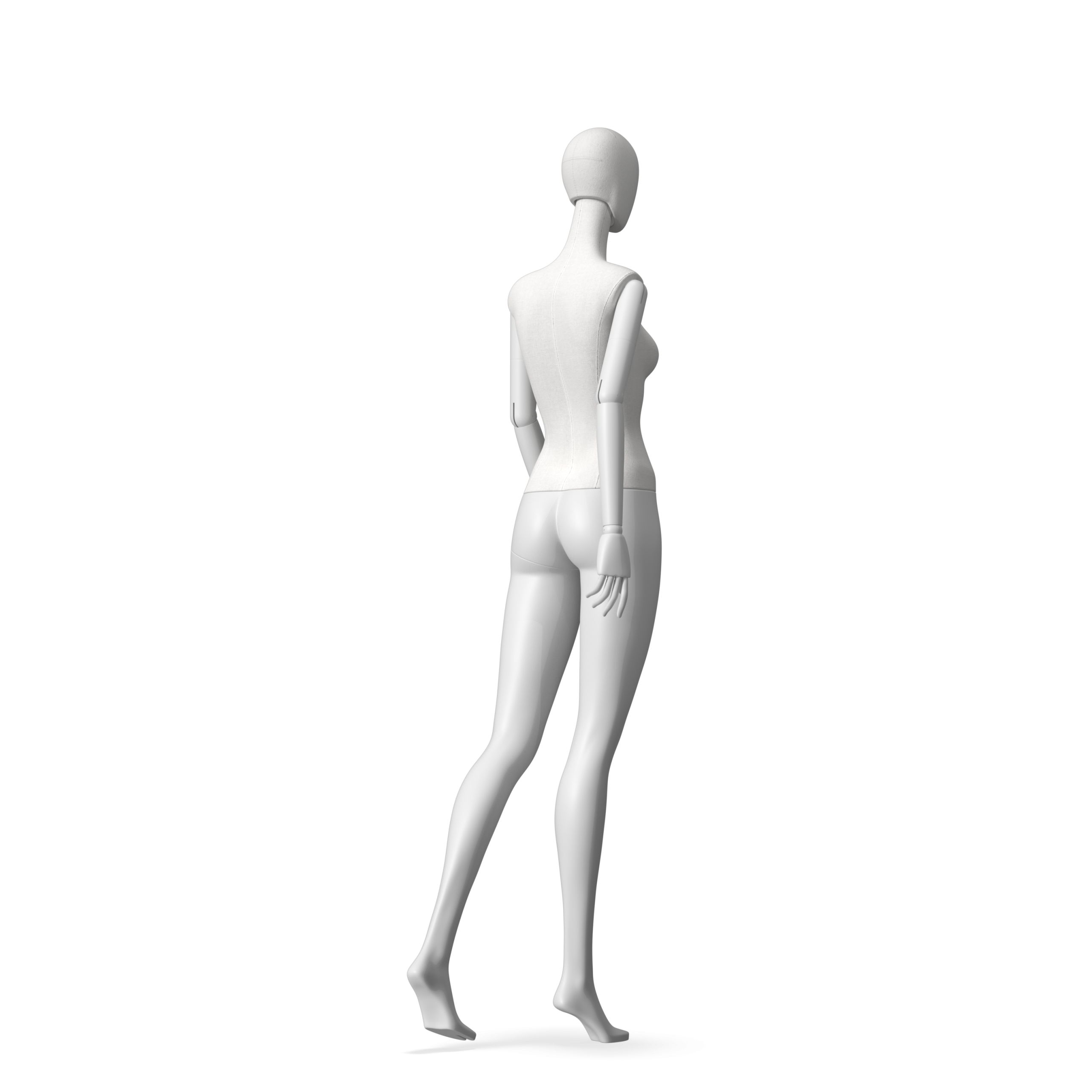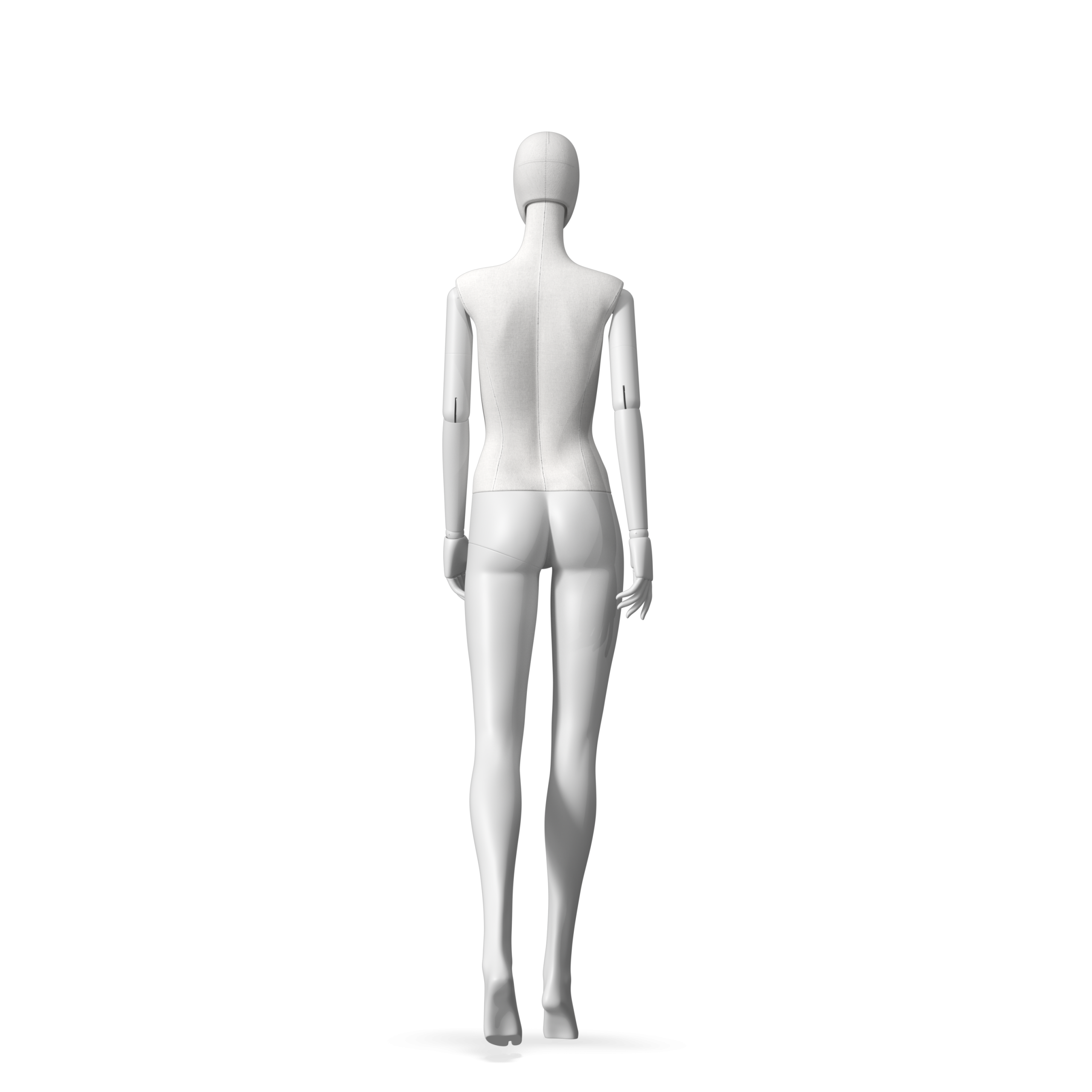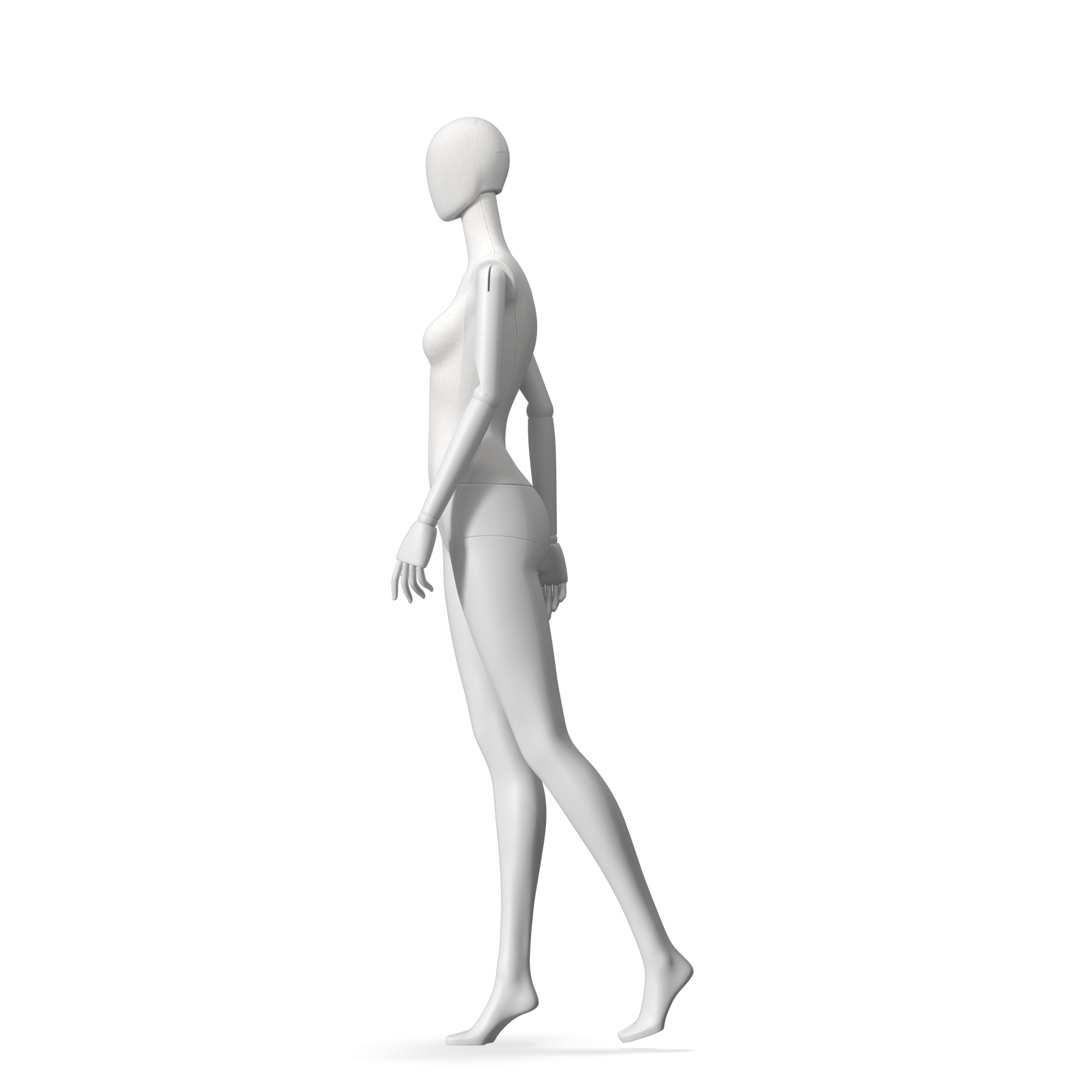 The Female Radiant Fabric is covered with fbr-amjf640 canvas linen look fabric and has C8 white matte, wooden articulated arms. She has a detachable 360˚ Egg Head with a NO-GAP design. Different head options can be ordered seperately. A 42cm Round Glass Base with a Silver Chrome Upright & Calf Pin is included.