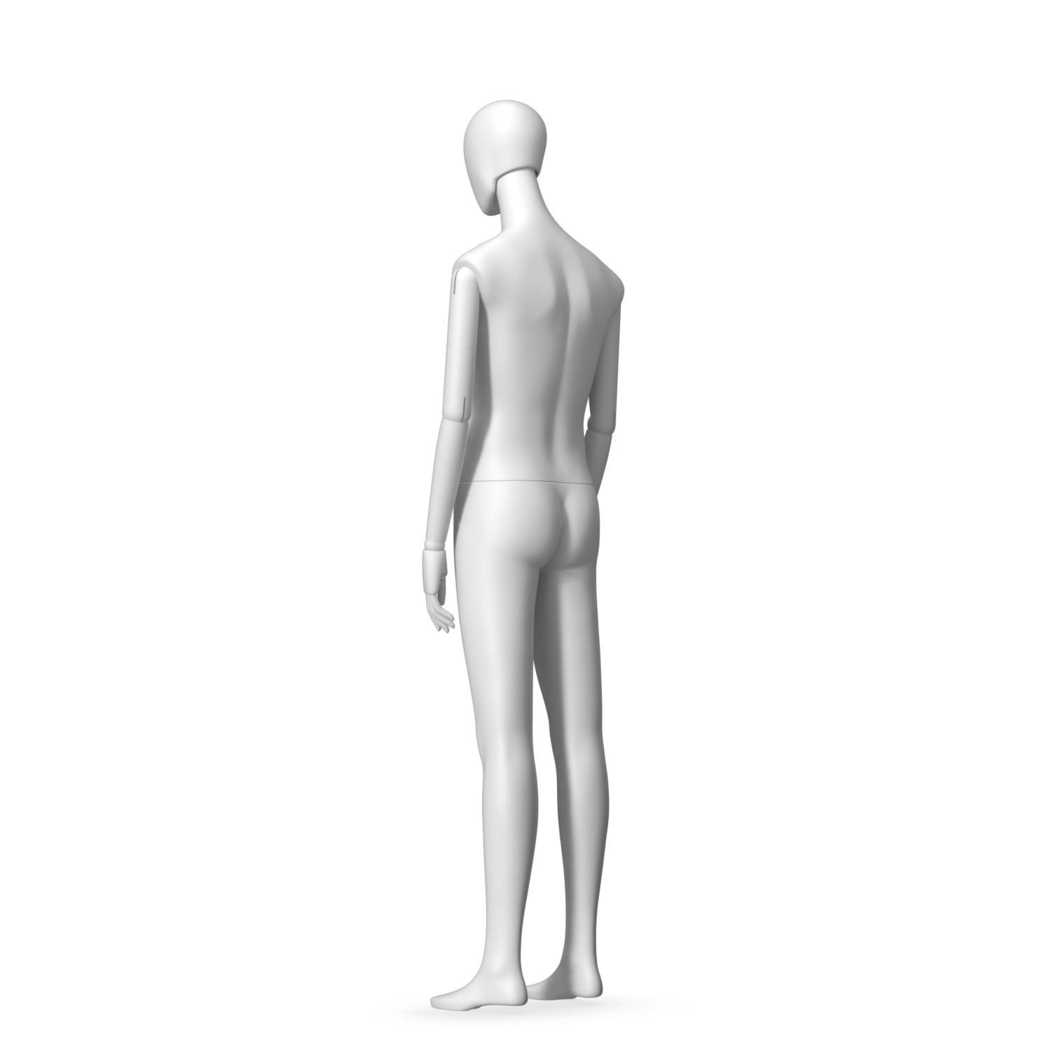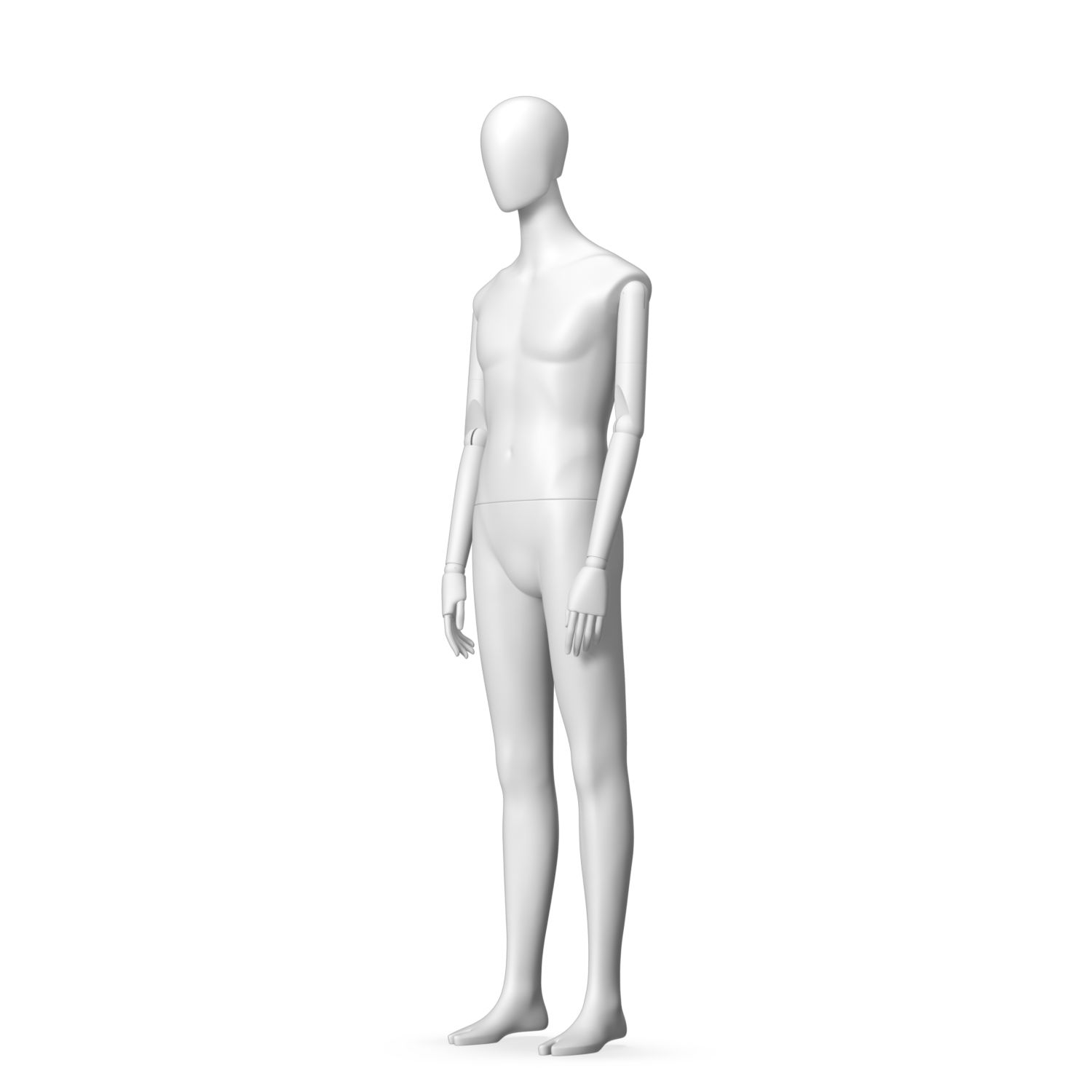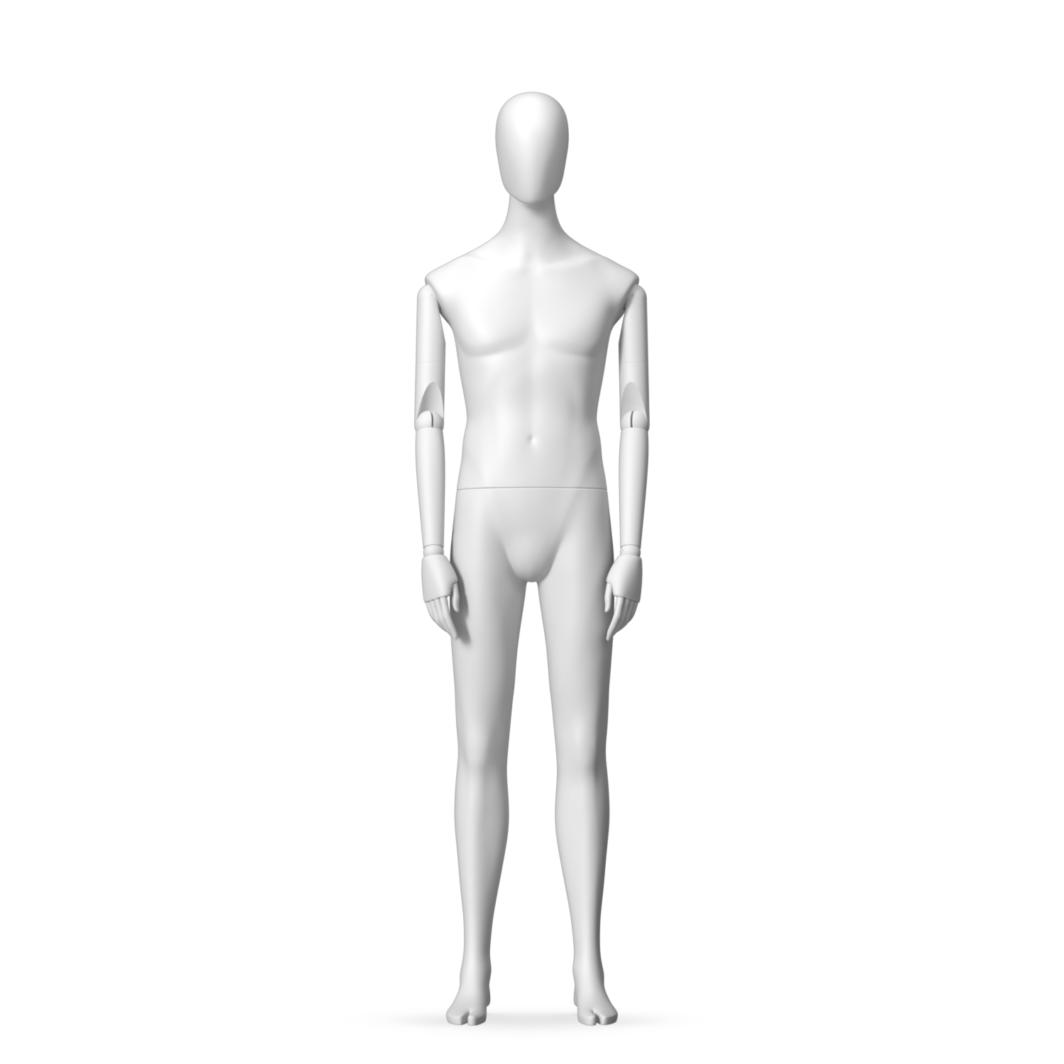 The Male Radiant Articulated is finished in C8 white matte paint, with C8 white matte, wooden articulated arms. He has a detachable 360˚ Egg Head with a NO-GAP design. Different head options can be ordered seperately. A 42cm Round Glass Base with a Silver Chrome Upright & Calf Pin is included.