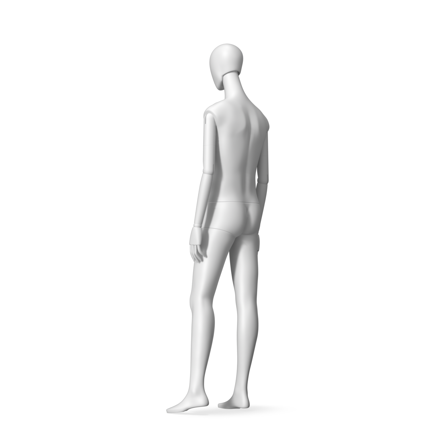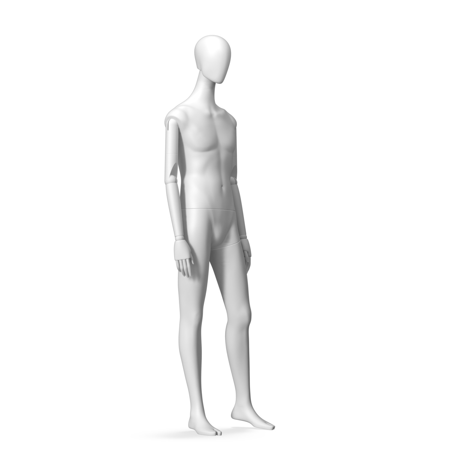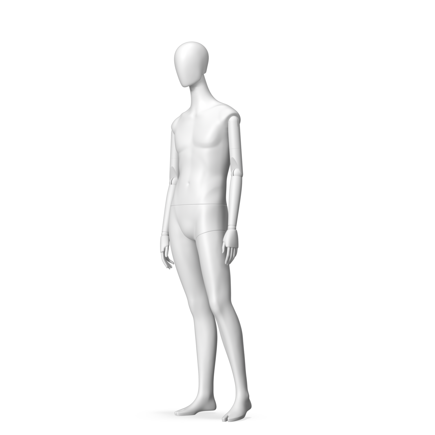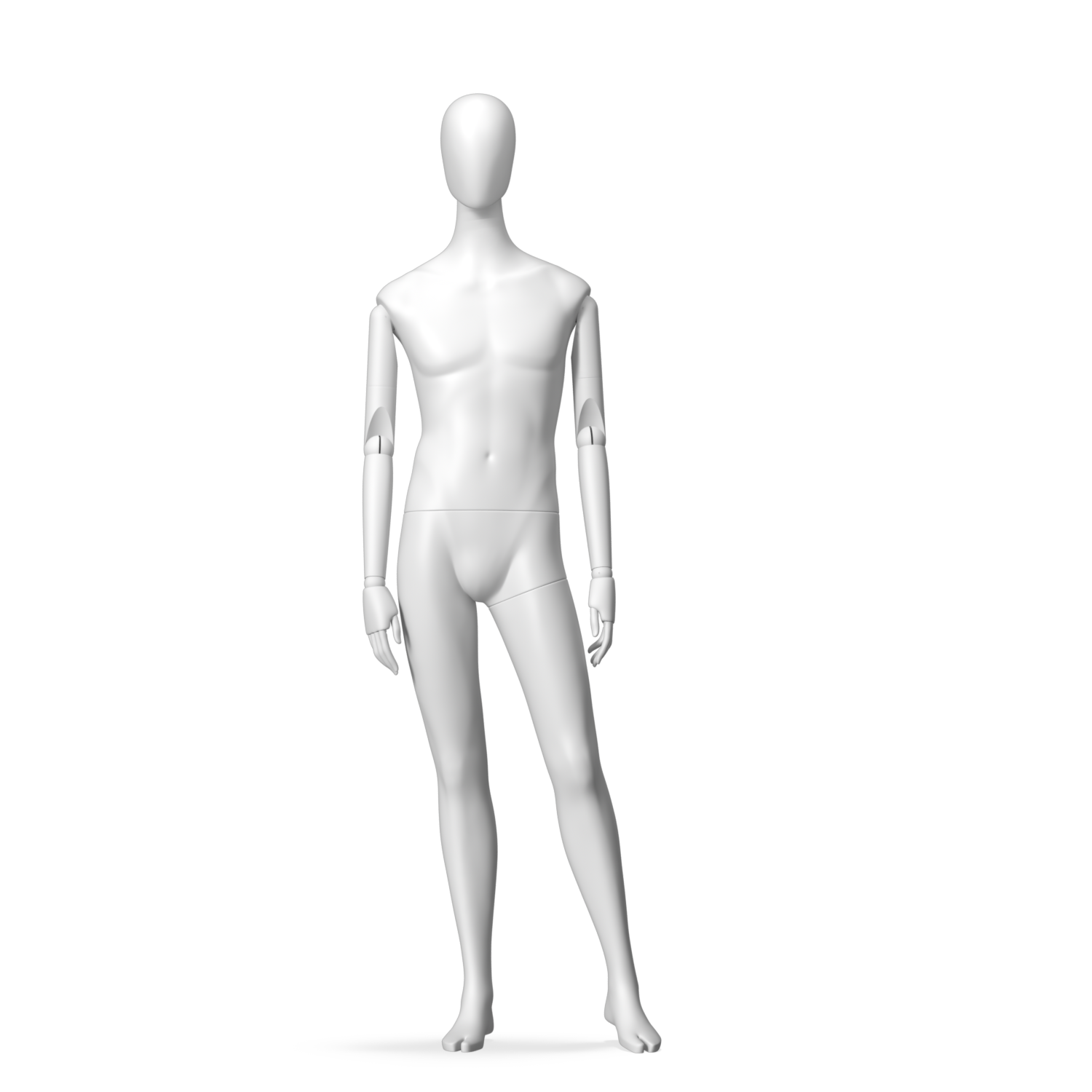The Male Radiant Articulated is finished in C8 white matte paint, with C8 white matte, wooden articulated arms. He has a detachable 360˚ Egg Head with a NO-GAP design. Different head options can be ordered seperately. A 42cm Round Glass Base with a Silver Chrome Upright & Calf Pin is included.