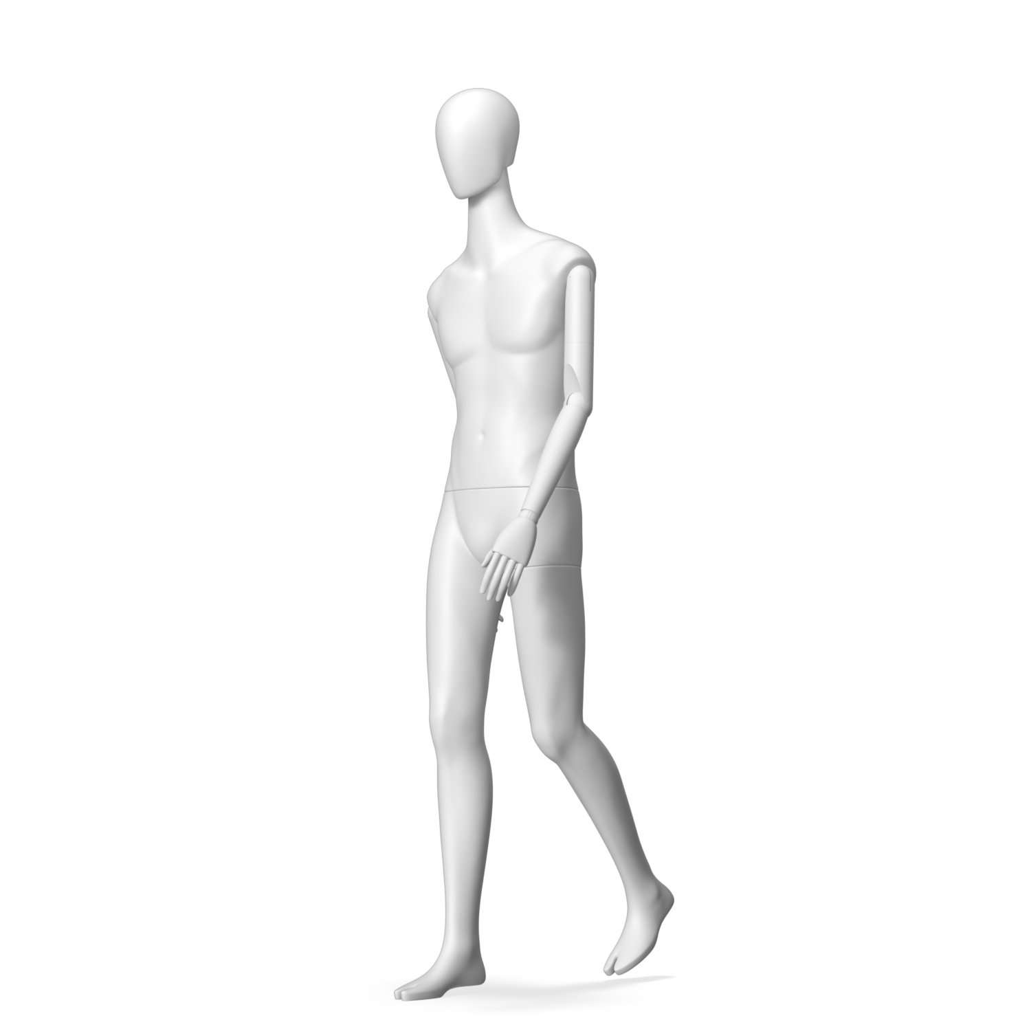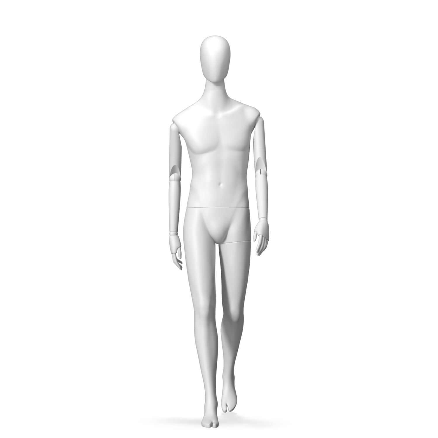 The Male Radiant Articulated is finished in C8 white matte paint, with C8 white matte, wooden articulated arms. He has a detachable 360˚ Egg Head with a NO-GAP design. Different head options can be ordered seperately. A 42cm Round Glass Base with a Silver Chrome Upright & Calf Pin is included.