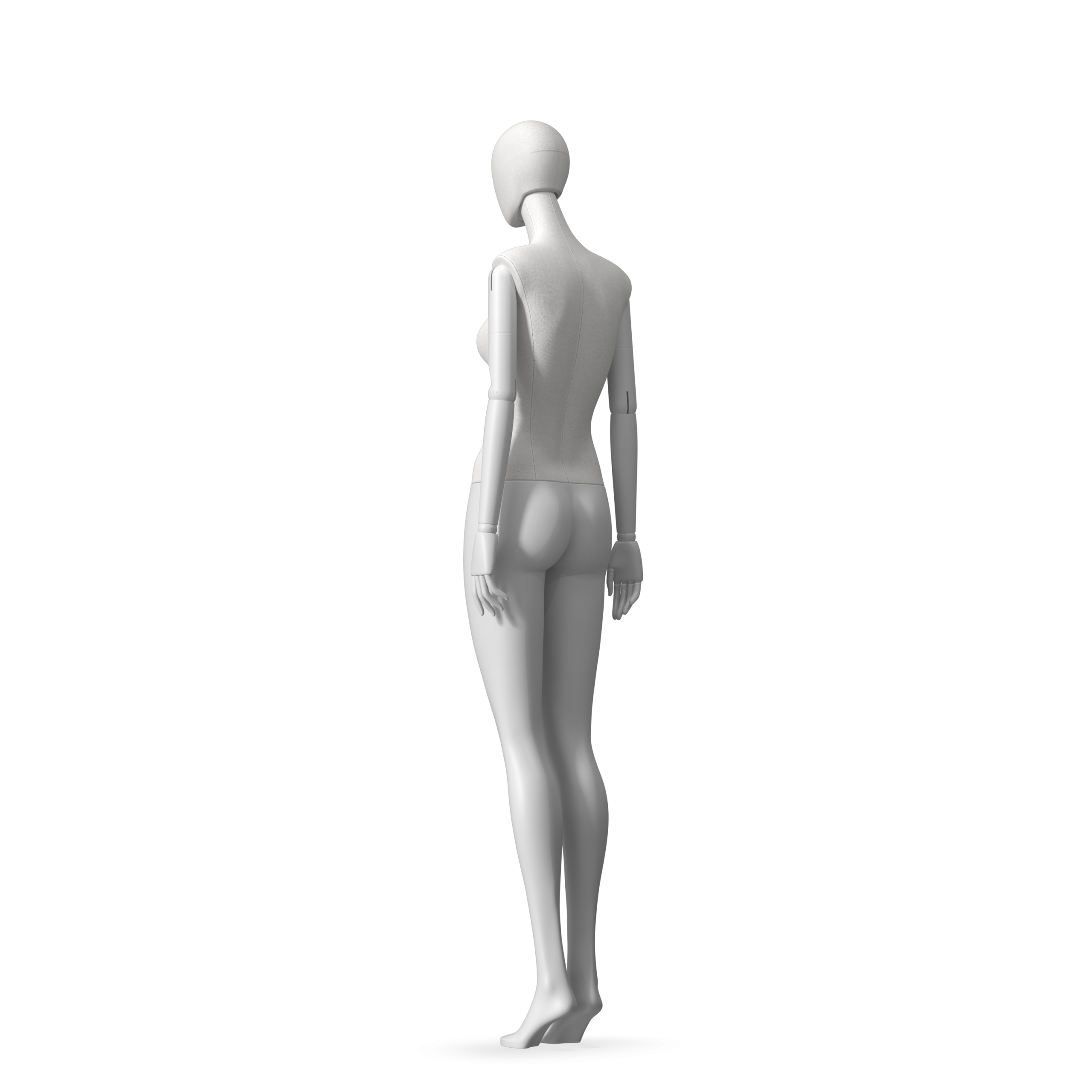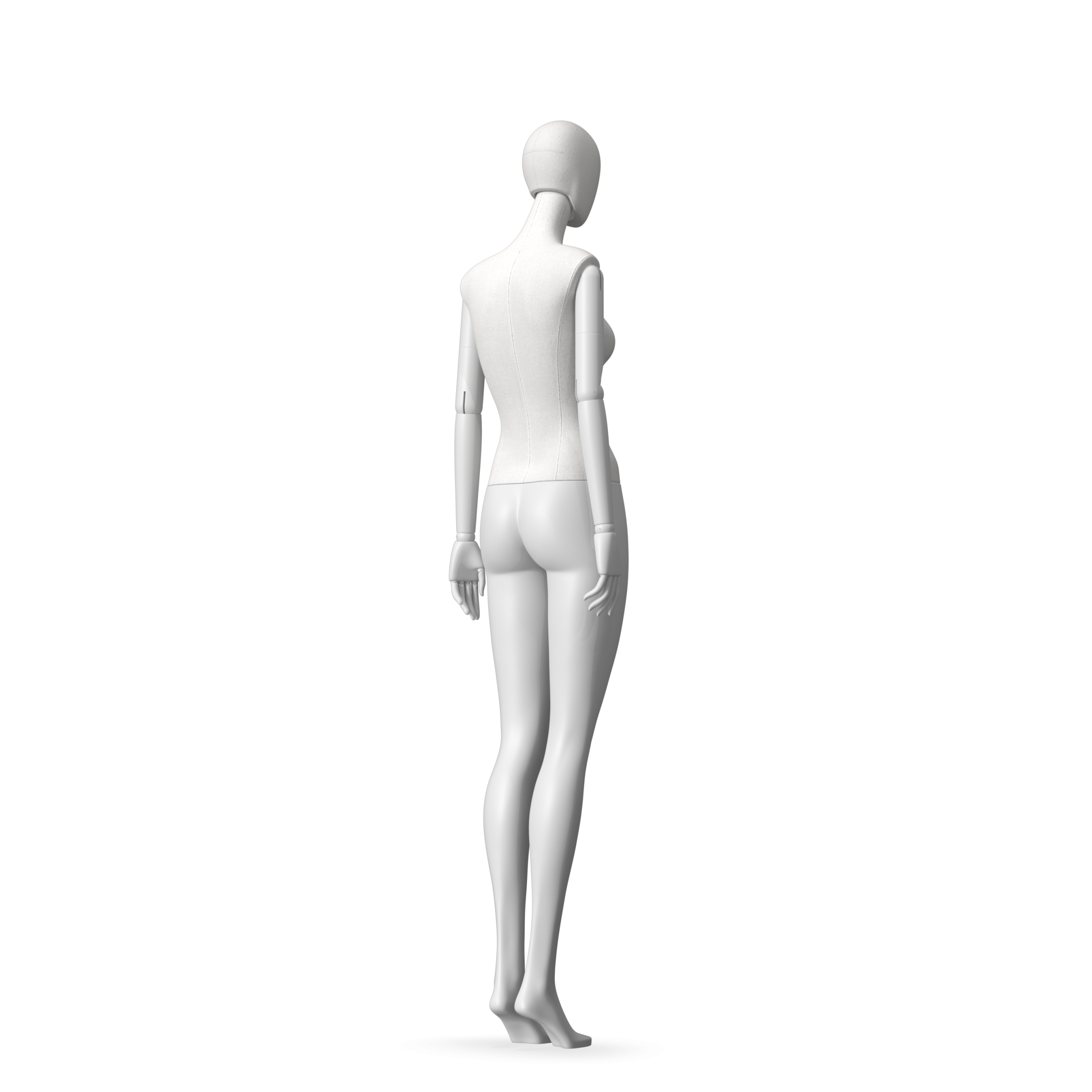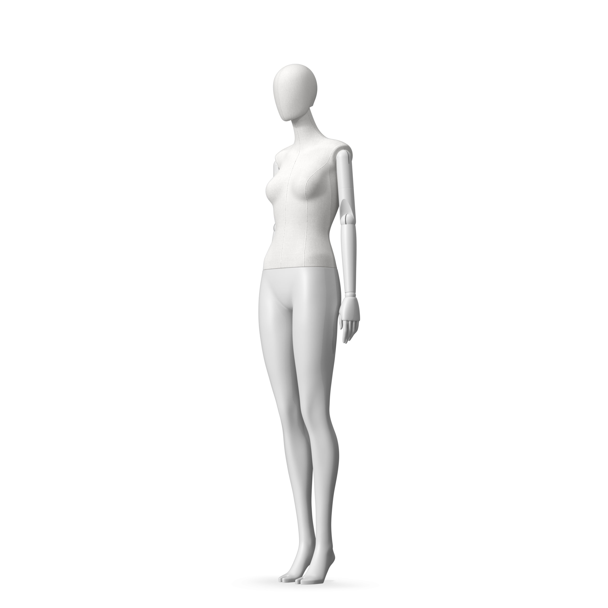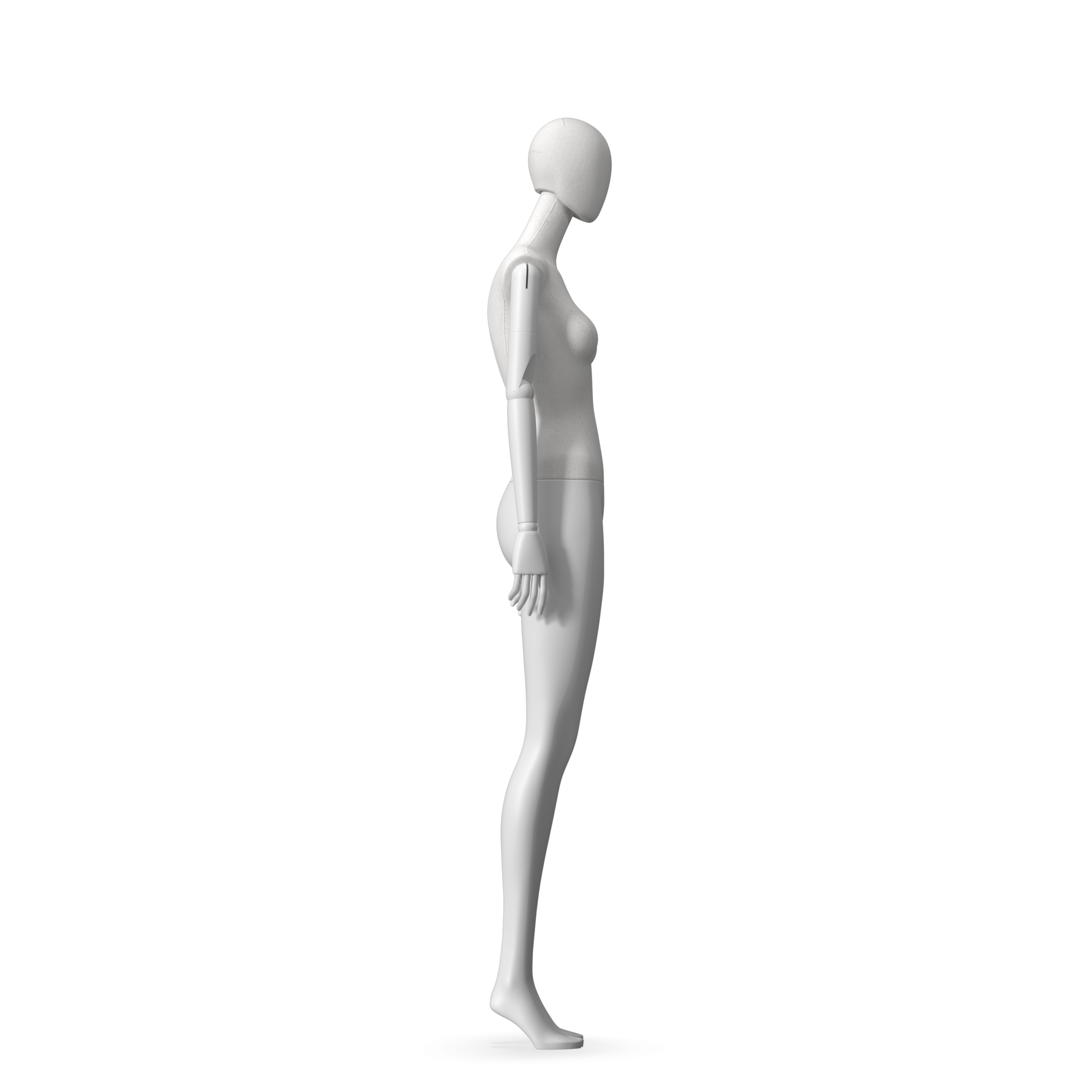 The Female Radiant Fabric is covered with fbr-amjf640 canvas linen look fabric and has C8 white matte, wooden articulated arms. She has a detachable 360˚ Egg Head with a NO-GAP design. Different head options can be ordered seperately. A 42cm Round Glass Base with a Silver Chrome Upright & Calf Pin is included.