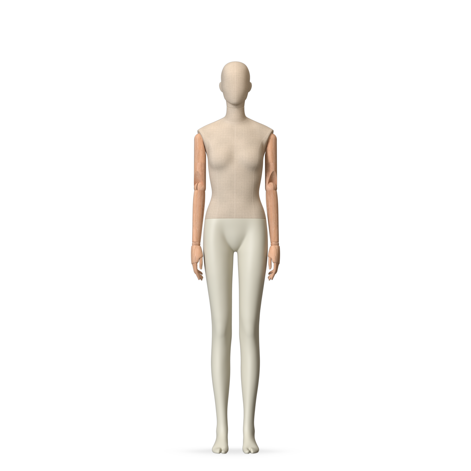 The Female Canvas Articulated has a body with Amjf 643 Canvas Linnen,Pantone 9225C matte legs and Natural Wood articulated arms with Non-Art fingers.