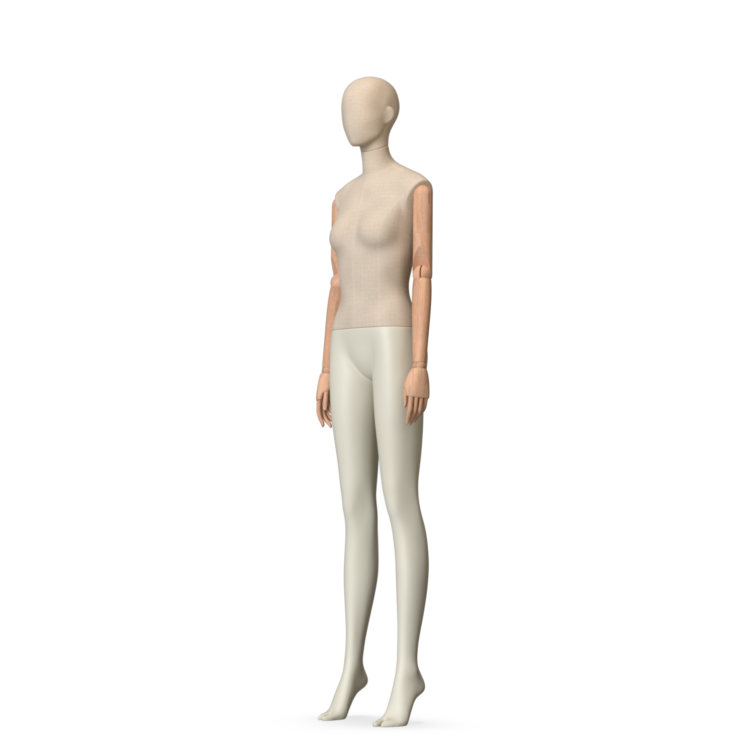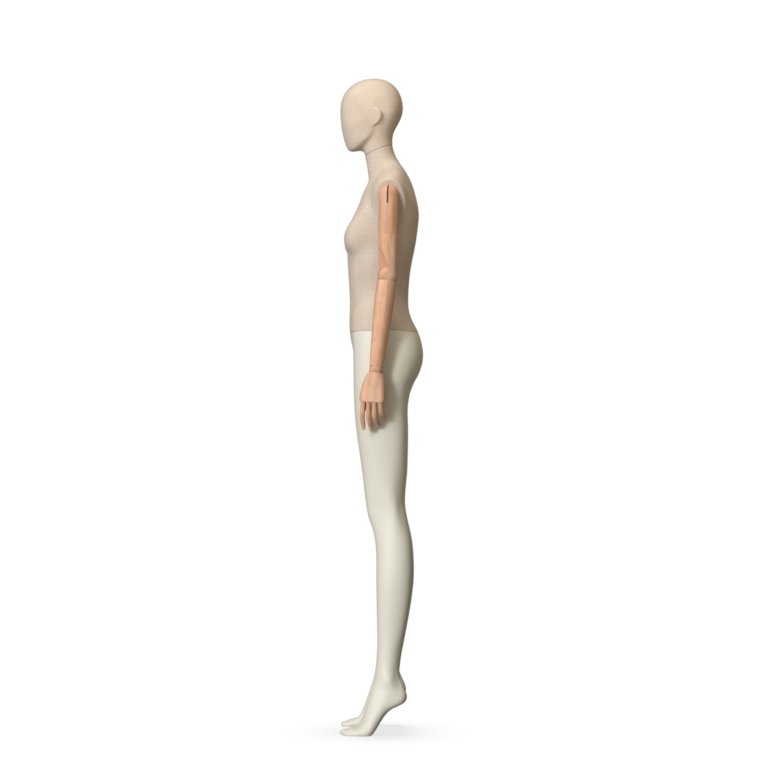 The Female Canvas Articulated has a body with Amjf 643 Canvas Linnen,Pantone 9225C matte legs and Natural Wood articulated arms with Non-Art fingers.
