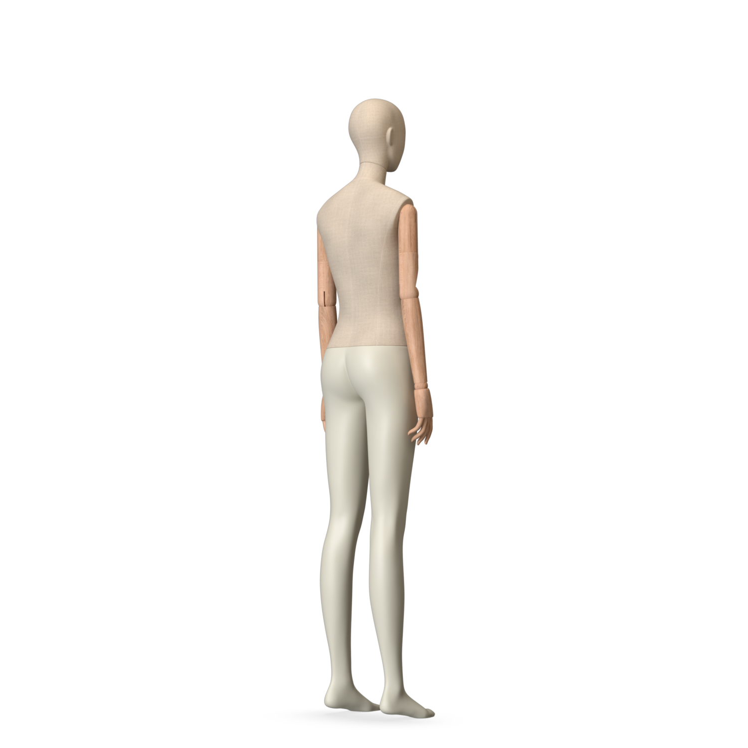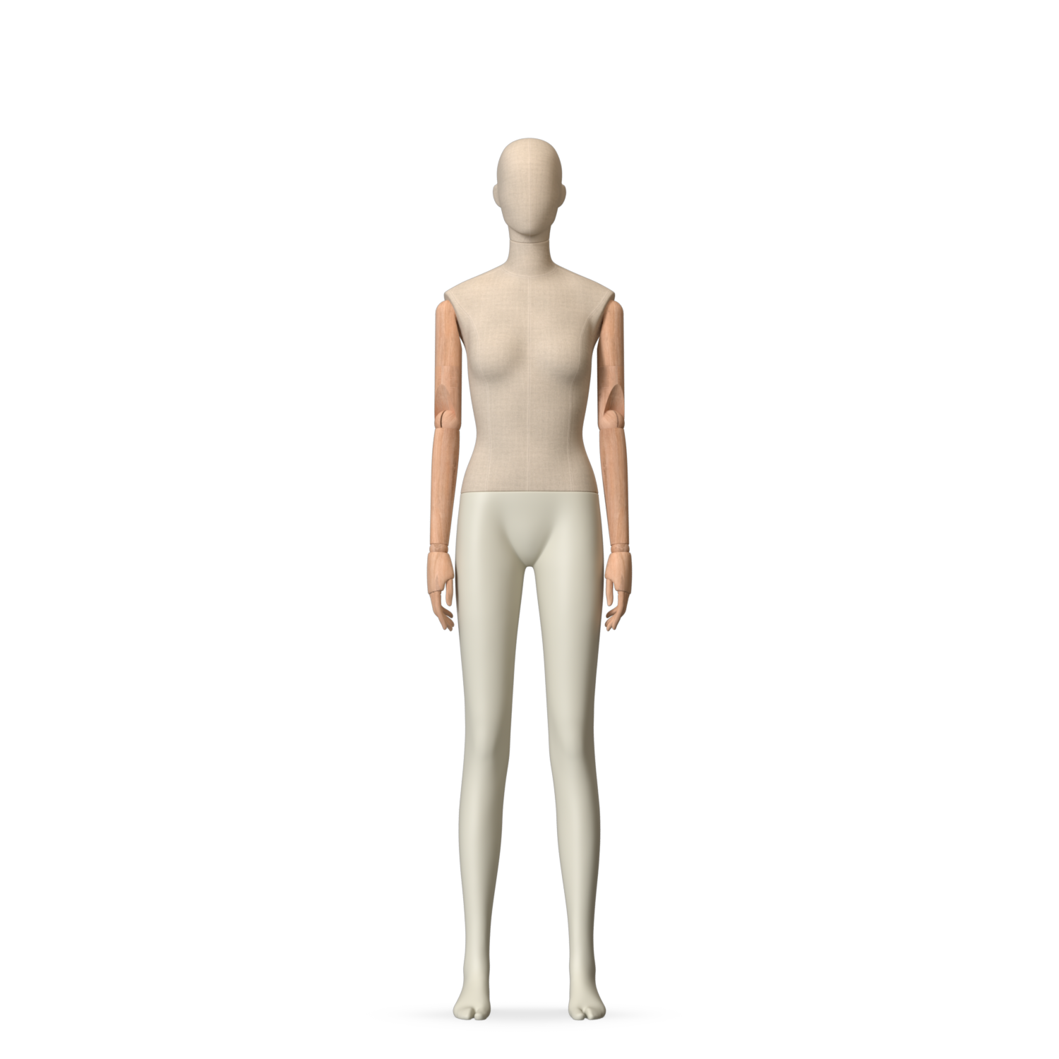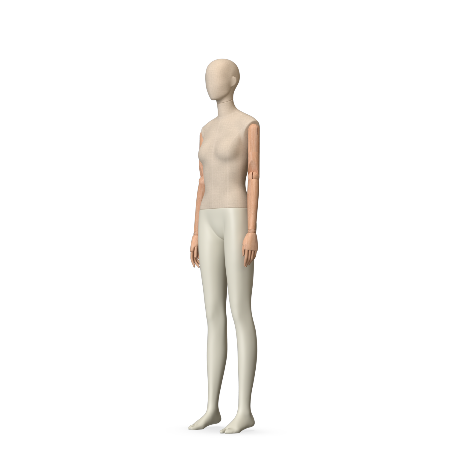 The Female Canvas Articulated has a body with Amjf 643 Canvas Linnen,Pantone 9225C matte legs and Natural Wood articulated arms with Non-Art fingers.